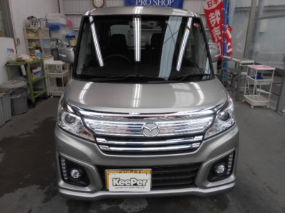 クリスタルキーパー 施工車です。 納車したてのスペーシアにクリスタルキーパーを施工いたしました。納車から3か月以内のお客様は新車割引15%OFFで施工いたします。新車ご購入時ぜひご利用ください。 |