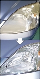 ヘッドライトが白ボケ・黄ばみがある場合、きれいに取り除いてからレンズコーティングを施工します。